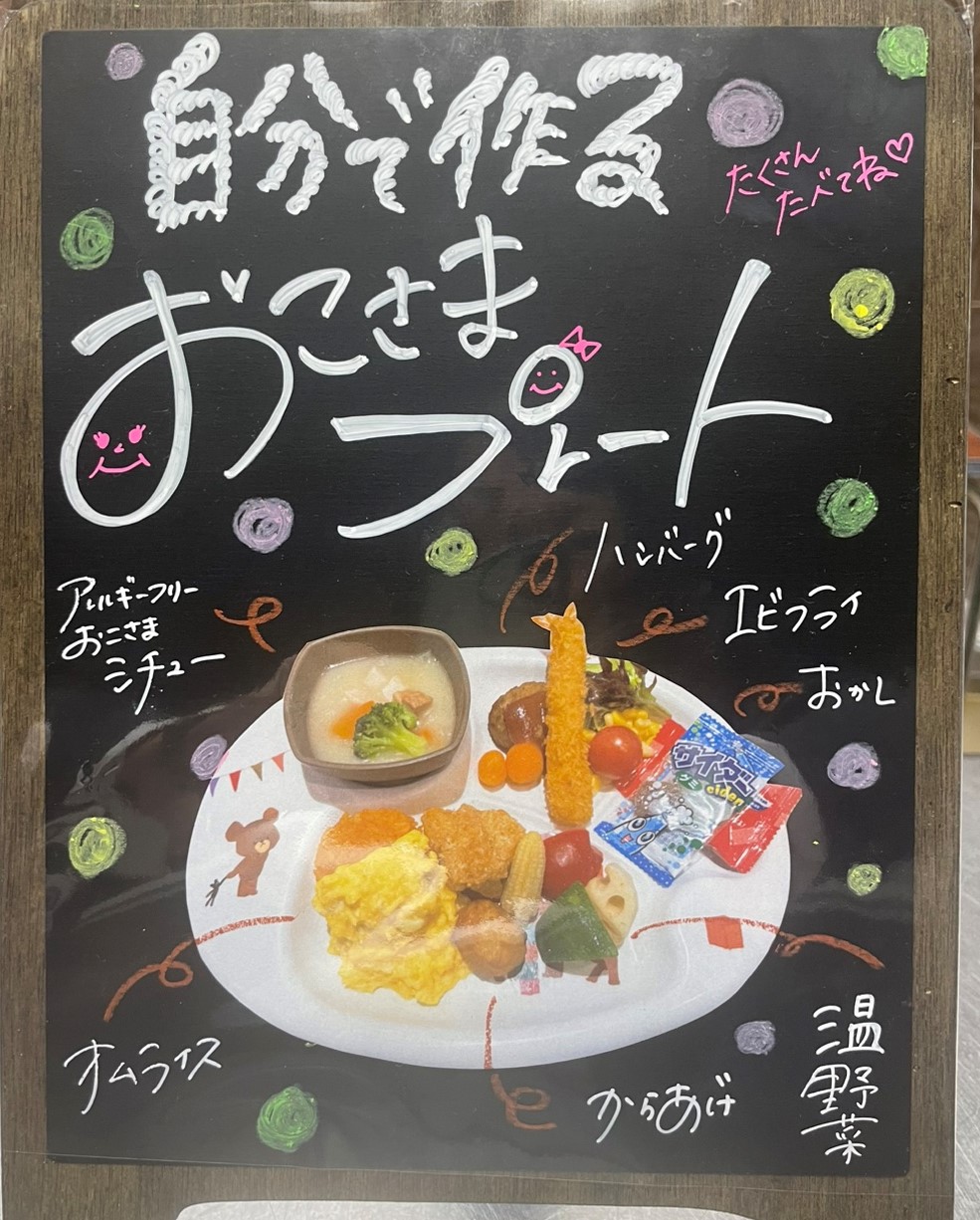 【オムライス】【エビフライ】【ハンバーグ】【ポテト】【からあげ】etc・・どれにしようか楽しみながら盛り付けてね。