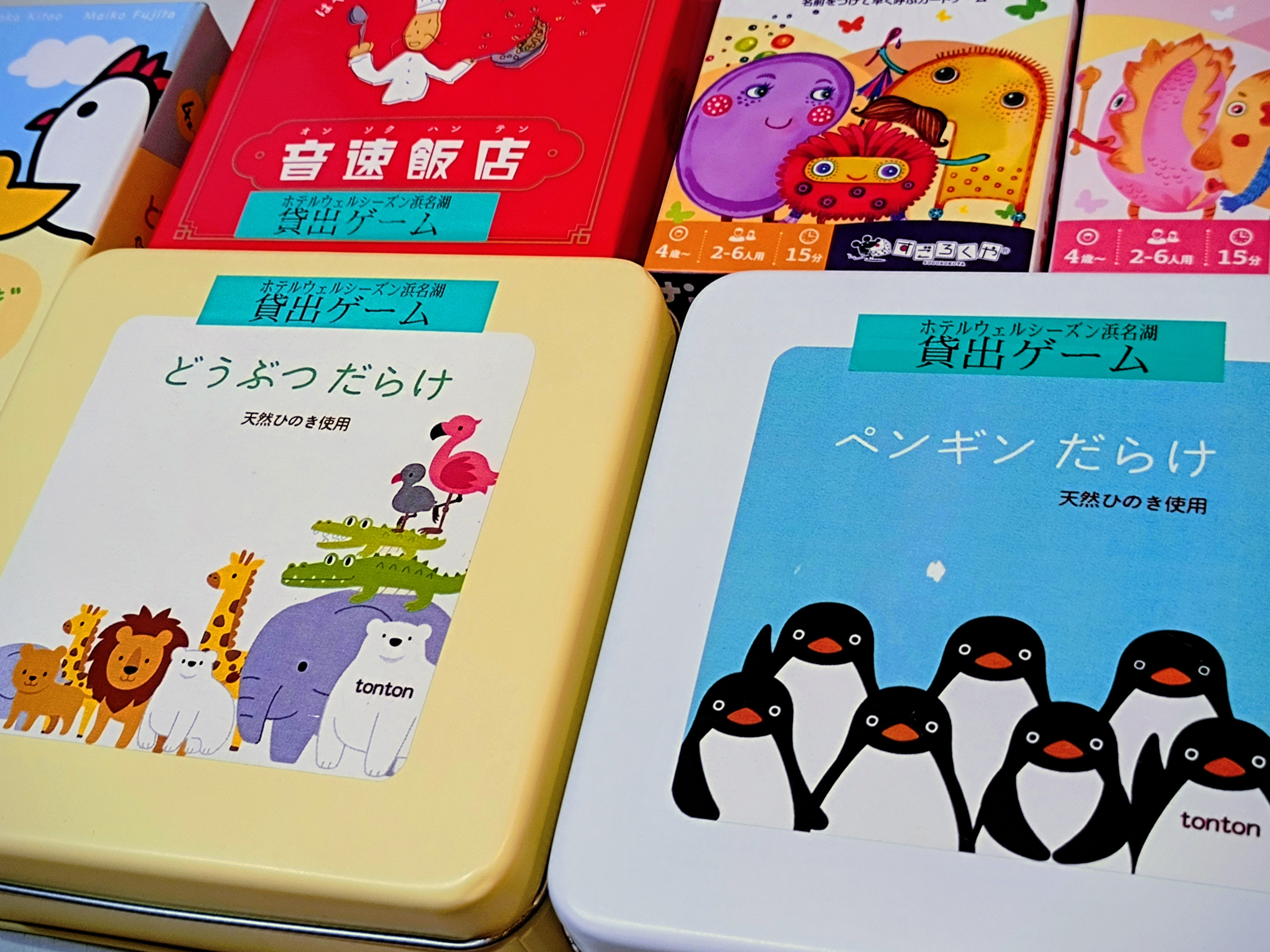 「どうぶつしょうぎ」に「音速飯店」、「ナンジャモンジャ」といった有名どころや、小さなお子さまでも楽しめる、浜松市の木製おもちゃ工房・tontonさんの「どうぶつだらけ」「ペンギンだらけ」が新しく仲間入りしました。
